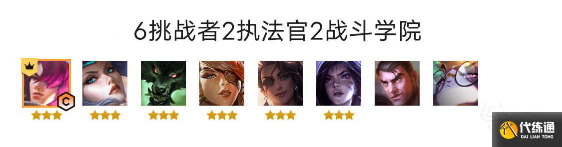阵容羁绊:六挑战者两执法官两战斗学院。