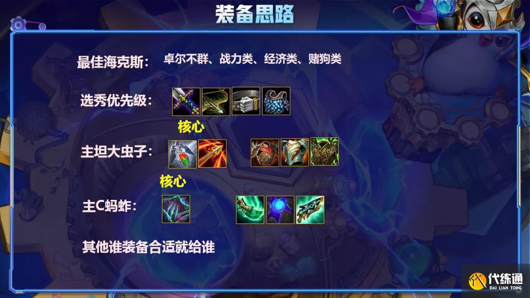 主要选择的赌船长和虫子,当然主要是没思考清楚装备又合了没法转换了,后期仅靠虫子也是必定吃分了,但是船长实在后期太拉了,没法应对赌巨魔和赌大嘴,最后成了帮他们抬刺客永恩法师吃烂分了。