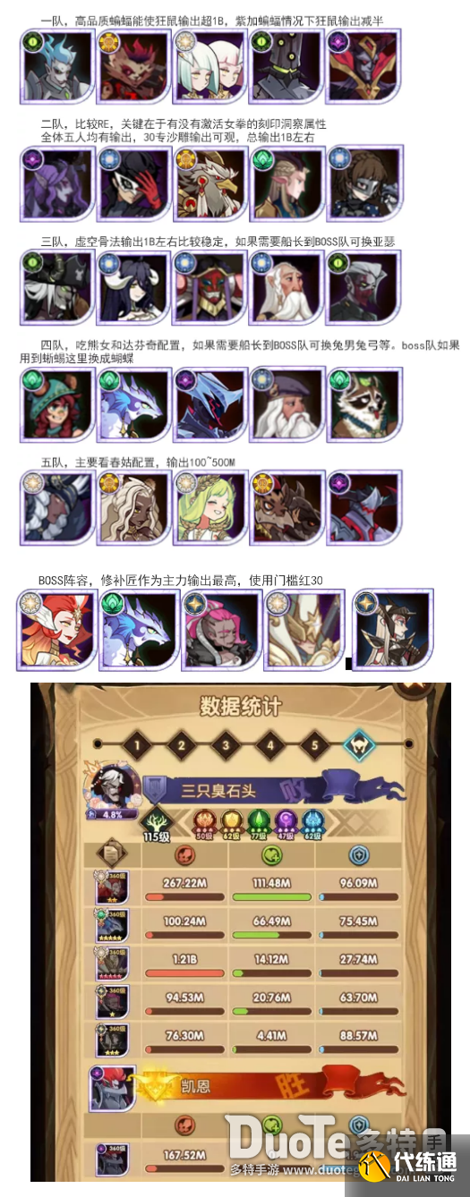 如果修补匠练度不高,也可尝试这套阵容,输出差不多。