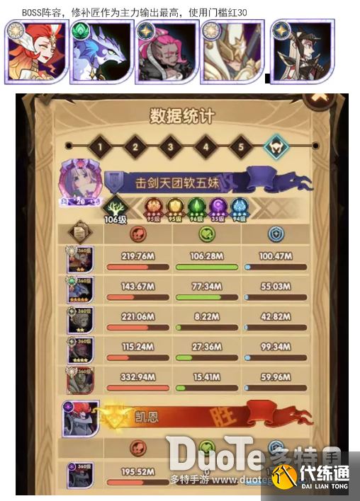 BOSS阵容,修补匠作为主力输出最高,使用门槛红30