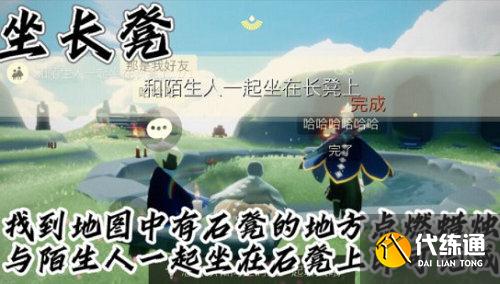 1.任务一:在地图上面找到一个双人石凳(休闲大厅里面就有),然后坐在陌生玩家的身旁即可。