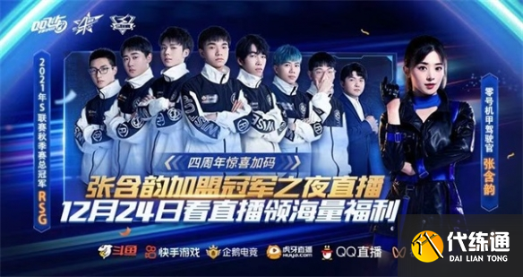 12月24日,属于秋季赛冠军队伍RSG的冠军之夜准时开启!RSG全员上阵,和车手们分享自己的夺冠心情。零号机甲驾驶官也将来到冠军之夜现场,与大家共度欢乐夜晚~RSG也为大家准备了超多福利,观看冠军之夜直播就有机会获得哦。