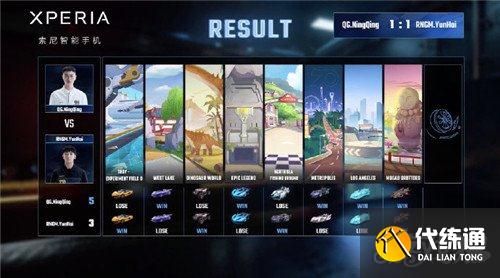 比赛又回到了均势局面,两人互有胜负直至第七局,状态回暖的宁清竟是驾驶着冰皇强势领跑洛杉矶,成功打破了自己的纪录,以1:29:65的成绩拿下这局比赛,将比分拉到4:3,进入赛点局。