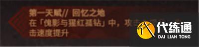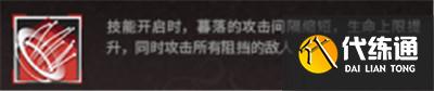 技能方面暮落有一个专门为【傀影与猩红孤钻】设计的天赋,可以提升他在【傀影与猩红孤钻】中的攻击力和攻击速度,在普通关卡中则没有该效果。