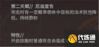 平时可用的天赋和特性配合非常好,一个有概率降低敌人的法术抗性数秒,另一个在释放技能时造成法术伤害。