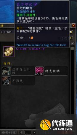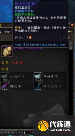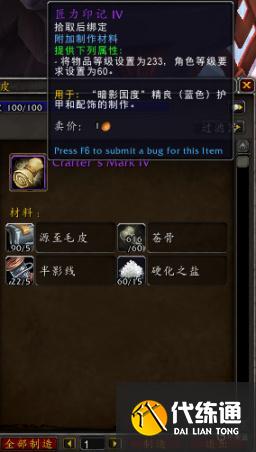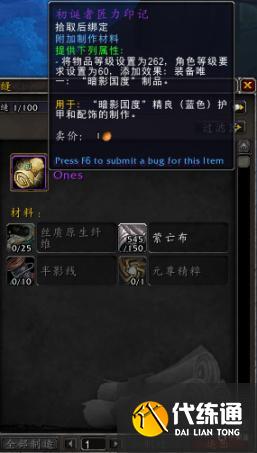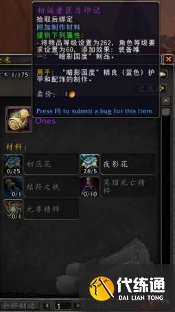 同9.1版本链屿匠力印记,可以制作262装备唯一装备。