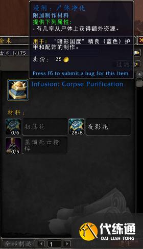 浸剂:尸体净化(有几率从尸体上获得额外资源)【炼金】