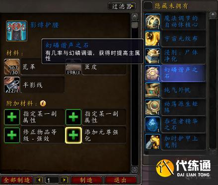 除了指定2个副属性(绿字),提升装备基础等级的强效(匠力),在原有的制造装备时新添加了一个插槽,即元尊强化。