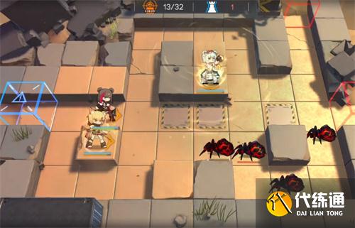 2.然后在左侧高台,即凛冬下方部署红云冲右侧攻击,技力满了直接开技能即可,优先把自爆红蜘蛛击杀。