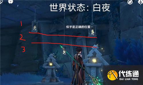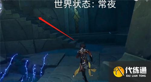 1.我们先用日月轮回机关将地图切换为白夜状态,之后再传送到狭间之街,飞到下图所示的位置。