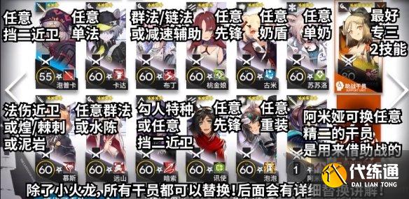 除了小火龙,其他干员均可替换。