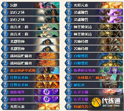 机械克苏恩牧是牧师职业的骚套路卡组,利用丛林猎手来开枪毁自己牌库。然后在鲁莽实验者站场的情况下,下破棺者拉出机械克苏恩+双自爆憎恶完成斩杀。