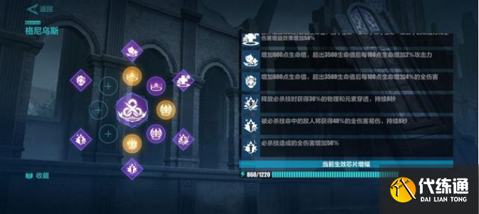 芯片和核心技能:核心技能一定要刺杀!套装芯片生命和必杀。普通芯片选攻击力、全伤和物伤。