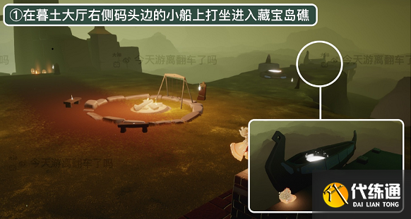 1、在墓土大厅右侧码头边的小船上打坐进入藏宝岛礁。