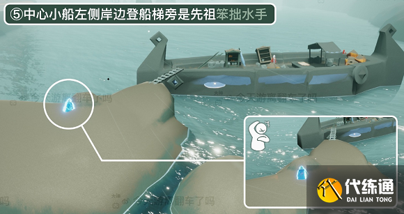 5、中心小船左侧岸边登船梯旁是先祖笨拙水手。