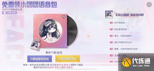 2、每有一名好友成功得到,你能够在邮件/礼物中心得到1个福袋,福袋解锁12次内必得“无敌小团团”语音包。