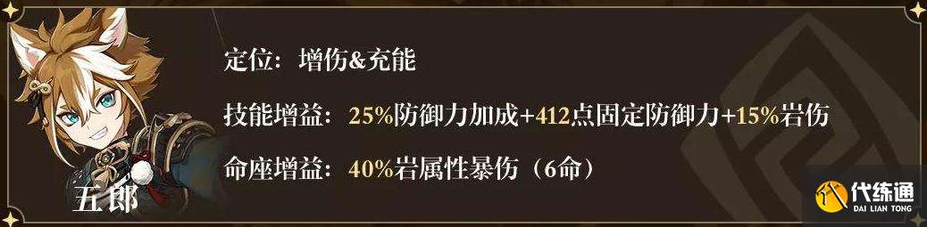 由于一斗本身就是岩元素,加之同期推出的相性极好的4星辅助角色五郎,其实一斗的队友选择真的十分有限。