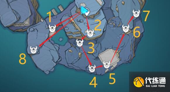 标点8:回到传送点,向着岛的最左边出发,箱子在远处的石柱下
