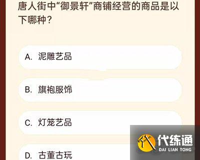 2.问题:唐人街中“御景轩”商铺经营的商品是以下哪种?