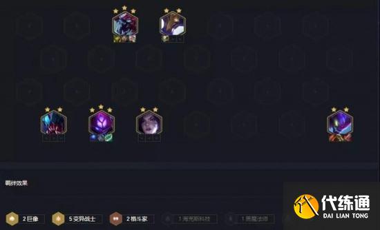这套阵容与双城版本变化不大,依然是以玛尔扎哈(蚂蚱)与科加斯(大虫子)为核心,如果螳螂来的早或又刺转也可考虑螳螂主C。测试服最近更新现阿利斯塔(牛头)双抗大增强,哪怕无装备都可稳定释放技能,坦度极其优质。虽说变异羁绊效果不同,但经过测试这套阵容只要不是强玩就能稳定吃分,且吃鸡率非常高。