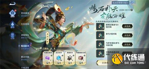 使用女娲英雄参与1场对局,可以获得2个五色石