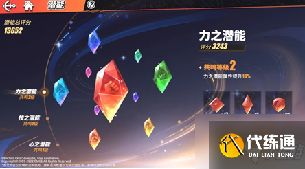 -激活共鸣:每种潜能都有三个槽位,分别镶嵌三种潜能玉——体魄玉、强击玉和坚韧玉。三个槽位都有潜能玉后,就能激活潜能共鸣,产生特殊效果加成。