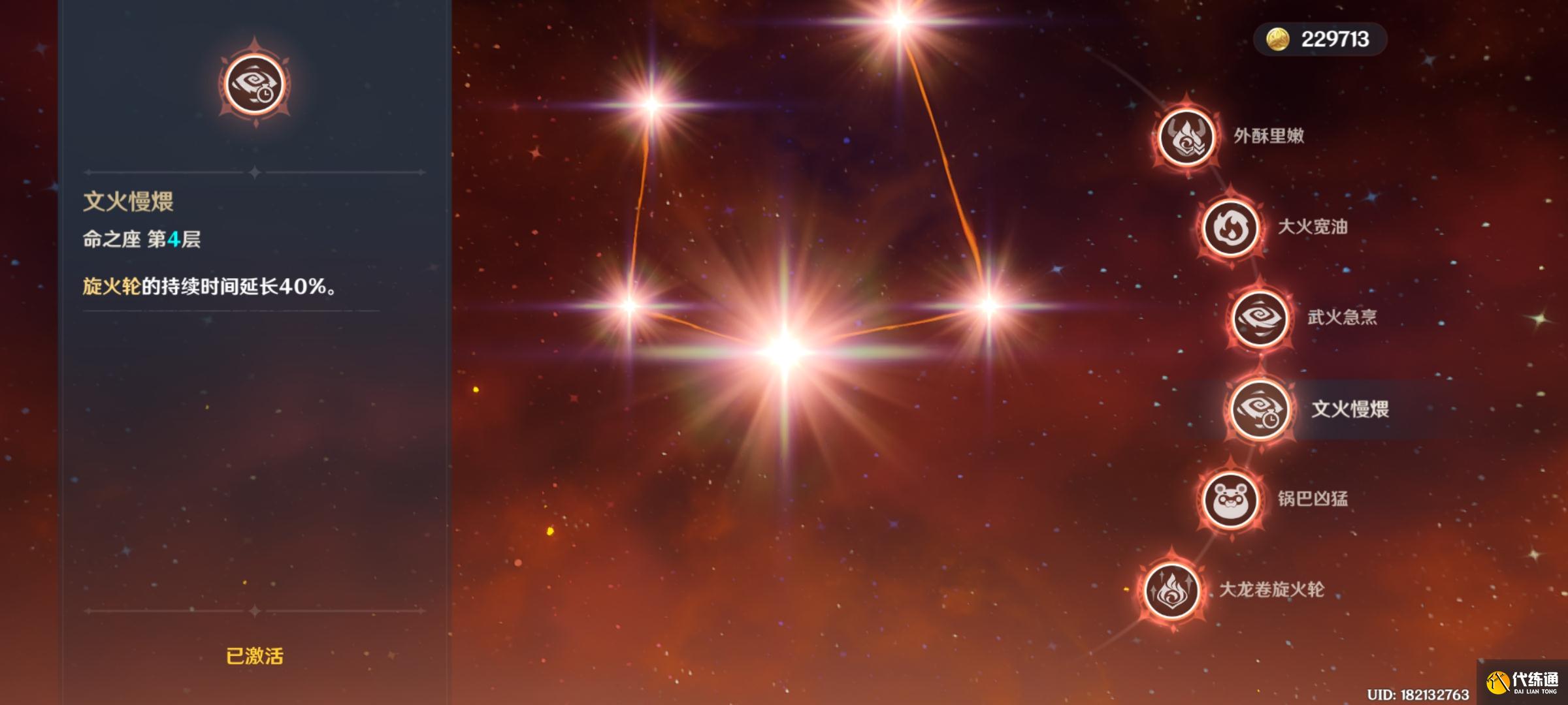 对香菱而言 四命无非是最关键的一个命座 大幅延长香菱Q技能旋火轮的存在时长 间接的提升大量伤害