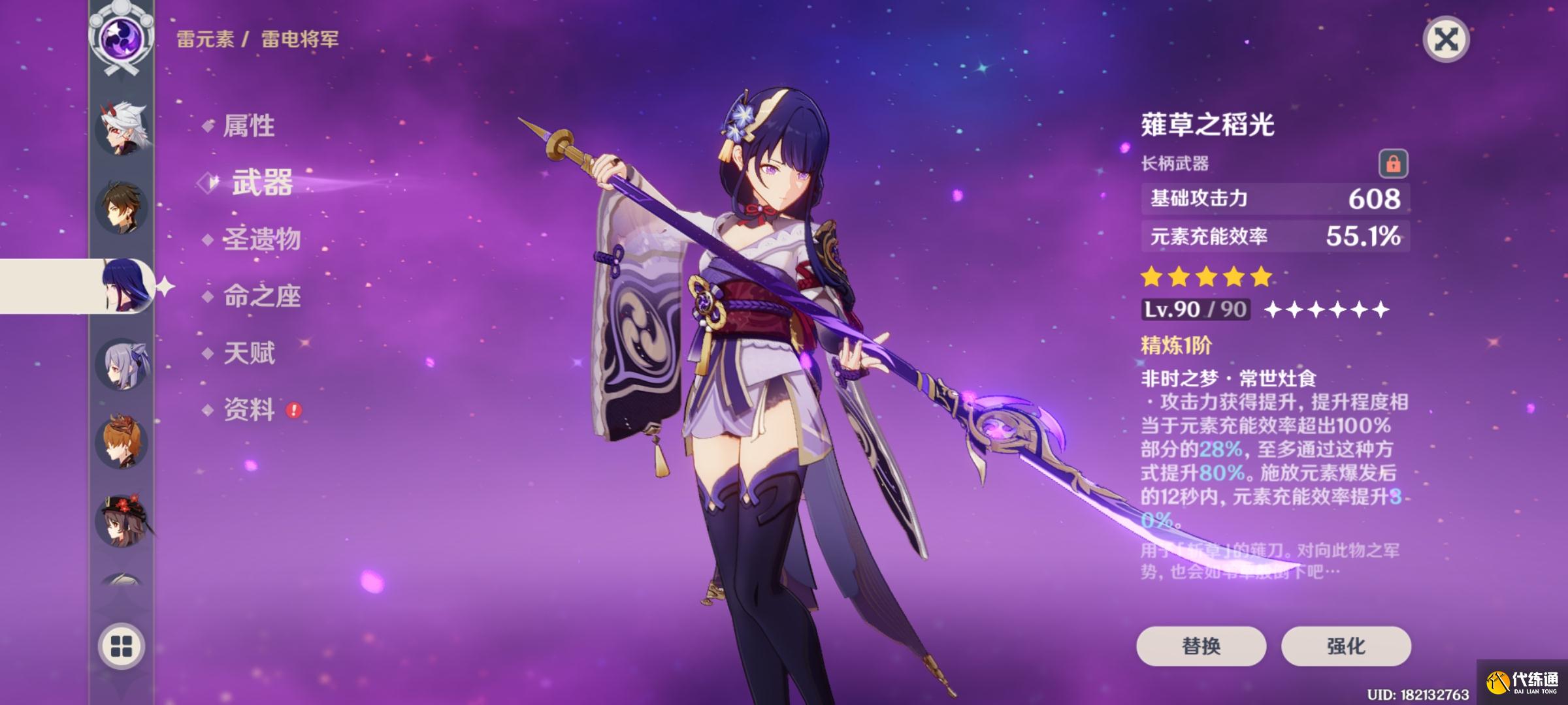首选专武「薙草之稻光」 「薙刀」的高额充能副词条和它的特效对雷神来说也是无比重要 它的特效能够为雷神提供大量攻击力与充能效率
