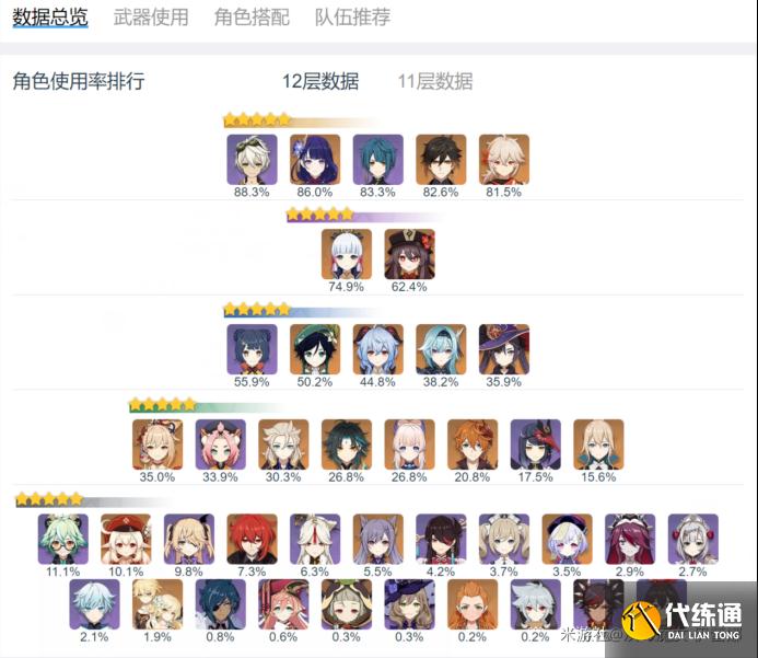 能够看到,优菈作为主C的使用率还是相当高的,大概仅次于版本主流的两个国家队。不过由于近期深渊的环境变化,多出了十分多的高物抗怪物,对物理输出的优菈而言相当不友好,导致近期出场率有所下滑。