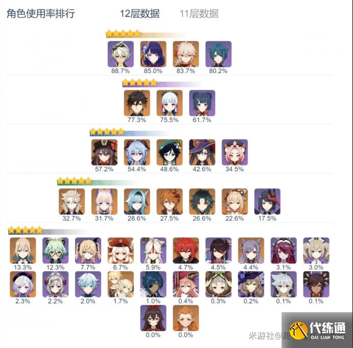 在讨论优菈的强度之前能够先看一下深境螺旋中满星过关12-3的阵容里优菈的登场率以及命座占比。