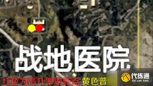 2、在医院中有两个军火库刷新地点,都在靠近南面的楼里,红色为高概率刷新点,黄色为普通概率刷新点;