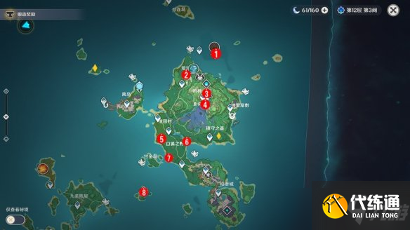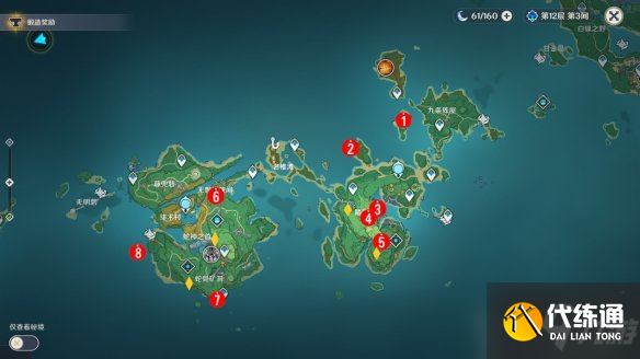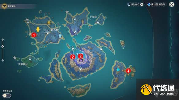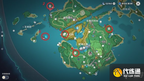 稻妻地区有10个地灵龛,在大世界探索可获得29个。因为分布区域较广我们会分片讲解。图上黄色菱形为地灵龛,红色标号为大世界探索宝箱。
