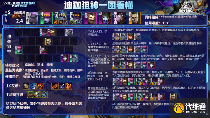 金铲铲之战霓虹之夜版本中迪迦狙神阵容相当强势,部分小伙伴可能还不清楚如何玩,下面一同来瞧瞧金铲铲之战霓虹之夜迪迦狙神阵容操作详细介绍吧。