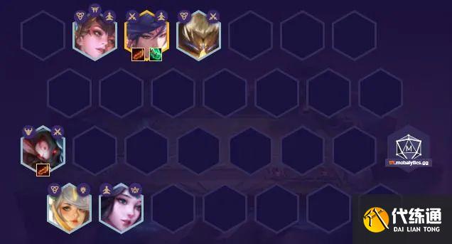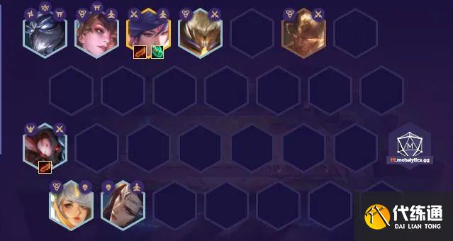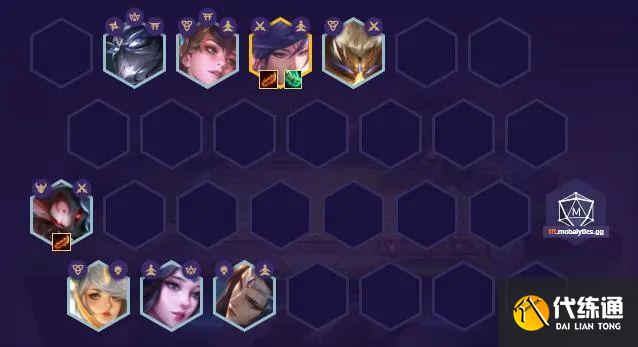 依靠中期剑姬的强势期,连胜速追人口,除了变阵找盲僧,不是很需要五费卡,上七之后如果搜到全阵容的牌就可以直接全金币速八,组成完全阵容,四玉剑四挑战剑姬即使被大削,三神装也足够在后期顶住,再慢慢搜高费二星提升质量。