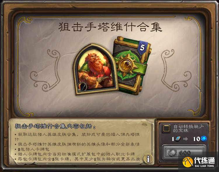 含构筑猎人新皮肤“狙击手塔维什”和5猎人包,国服售价60,北京时间3月29日下架。