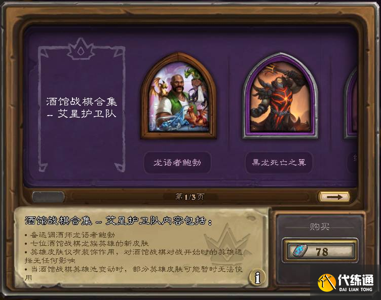 含战棋回归酒保“龙语者鲍勃”,和7款回归的巨龙主题的英雄皮肤: