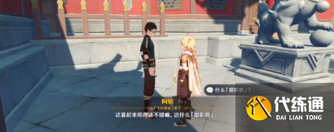 1、首先去飞云商会找家丁阿旭,对话接取任务,要求是将留影机印出的画送给两个客人。