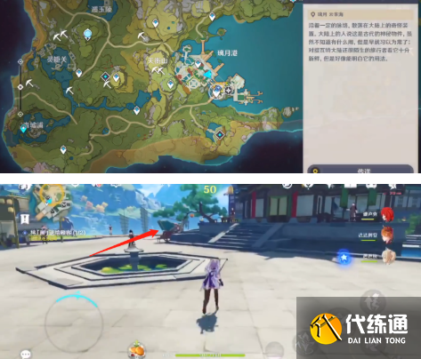 在地图上找到传送点里璃月,传送点出来,阿山婆就在斜对面的摆摊子那边。