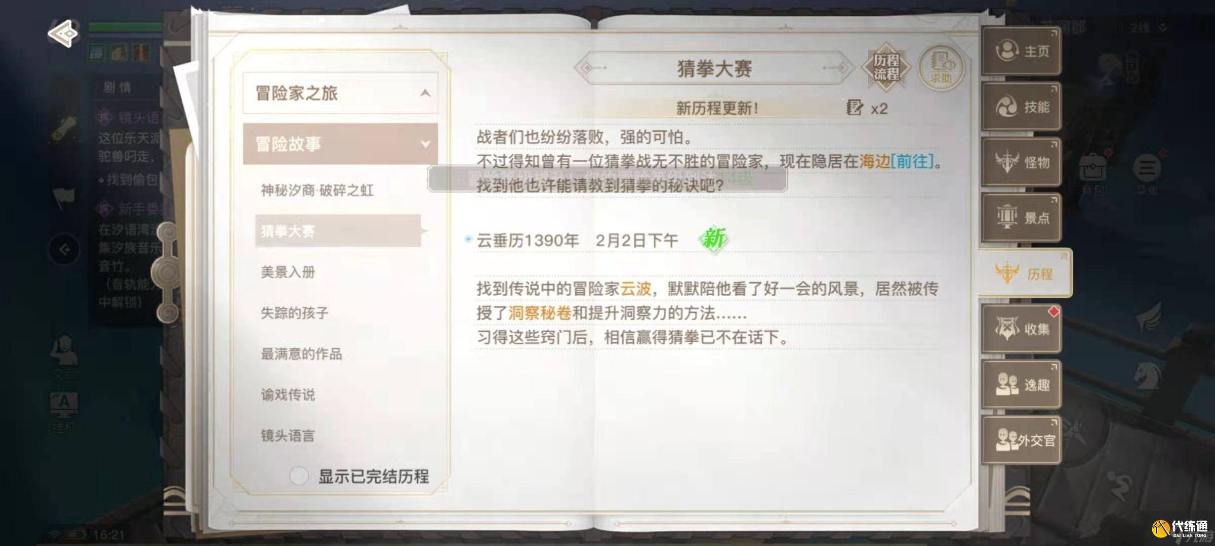 云波大师送给我们一个任务道具,洞察密卷。第三步就是带着洞察密卷这个作弊器去找之前提到的猜拳冠军比赛就可以了,自然是百战百胜,赢得比赛结束任务。