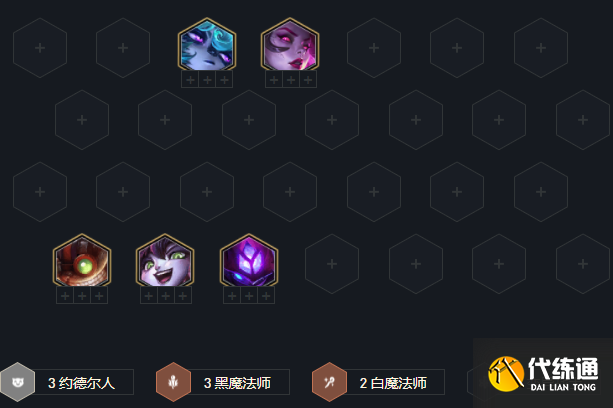 开局选秀直接拿眼泪,大棒开局2-1上4人口,2-5上五人口,组成3约德尔,3黑魔,2白魔,前期的话优先做玛尔扎哈的装备,尽可能打连胜升人口到8开始大搜。