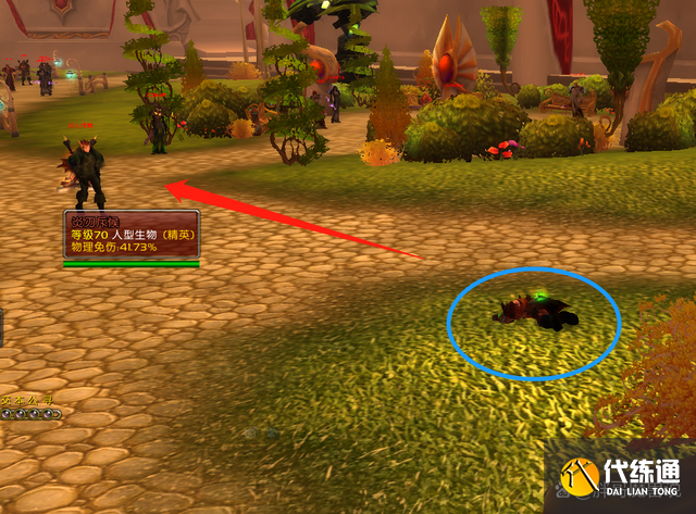 进去之后直接在大树后面假死,然后复活宠物,最终目的是单刷旁边的巡逻怪——炎刃斥候。炎刃斥候和走位的其他小怪不存在仇恨联动,只需要卡好引怪距离,就可以把这个小怪单独拉出来,然后直接强刷就可以了。