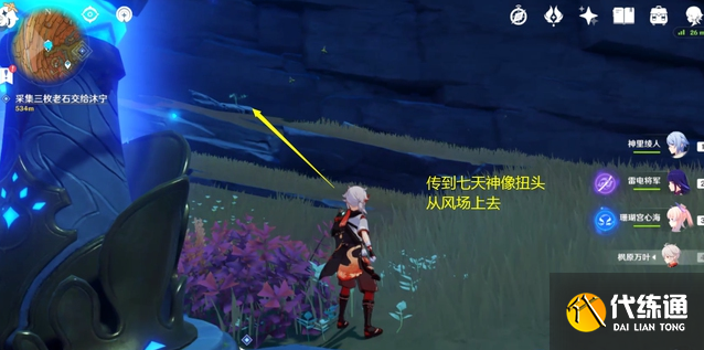 1、远眺之花在丹砂崖的最顶端,打开地图先传送到七天神像的地点