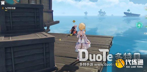 1、前往离岛码头与万叶对话,开启薄墨淡朱新绘任务。