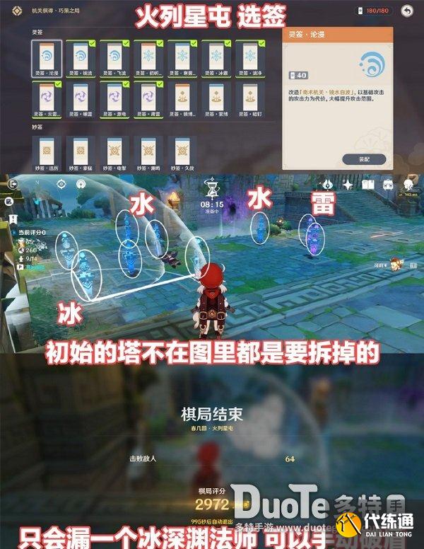2、摆放按照上图位置,摆好冰水雷即可,初始的塔不在图里都是需要拆掉的。