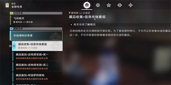 崩坏星穹铁道藏品收集信息终端套组任务怎么过?今天来讨论最新的任务玩法,这是冬城博物珍奇簿活动的任务之一,想要完成藏品收集信息终端套组任务的小伙伴可以多看看下面的攻略,帮助大家快速的了解任务过关方法。 崩坏星穹铁道藏品收集信息终端套组任务攻略 1、我们根据任务指引寻找到于尔丹馆长,与他进行对话了解 阅读全文...