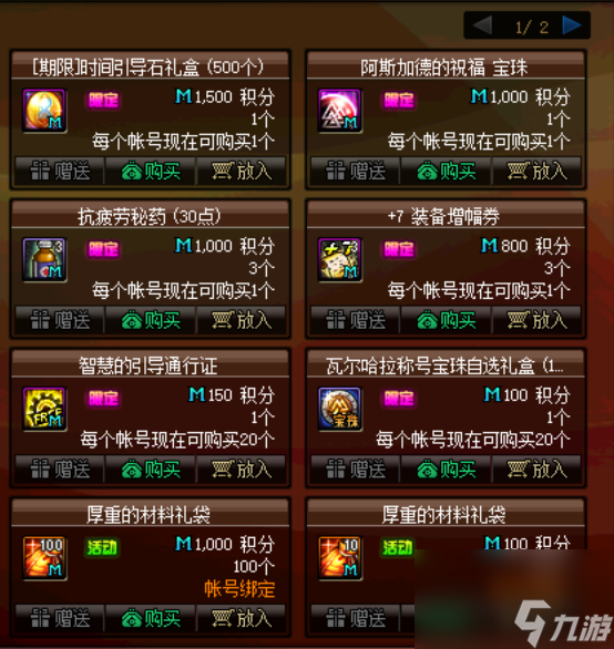 DNF本次五一也是一起上线了新的积分商城,目前还不确定是否有第二期。 当前商城: 材料袋子开的是换装材料,普雷材料,神器材料(最高天文书),和传说材料(魂灭结晶),意义不大; 称号宝珠只有想洗称号的才用得上,而且没洗到的话等于积分打水漂; 疲劳药虽好,但是90疲劳要1000积分实在有点高; 阿斯加 阅读全文...