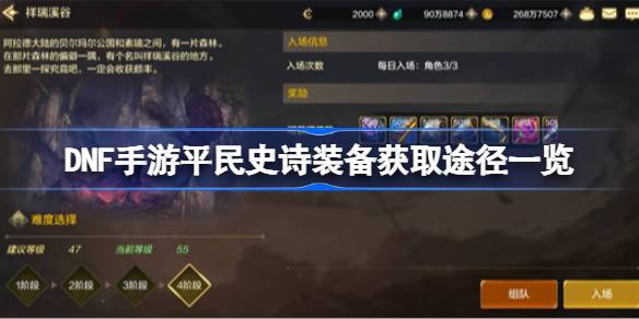 地下城与勇士手游里面的装备是分好几个不同品质等级的,越高品质的武器装备属性和附加的技能就越好,那么游戏前期平民玩家怎么去获取史诗级装备,下面就让我们来看看DNF手游平民史诗装备获取途径一览。DNF手游平民史诗装备获取途径一览1、祥瑞溪谷:17级就开启的日常副本祥瑞溪谷,位于委托栏中,角色每日可以免费 阅读全文...