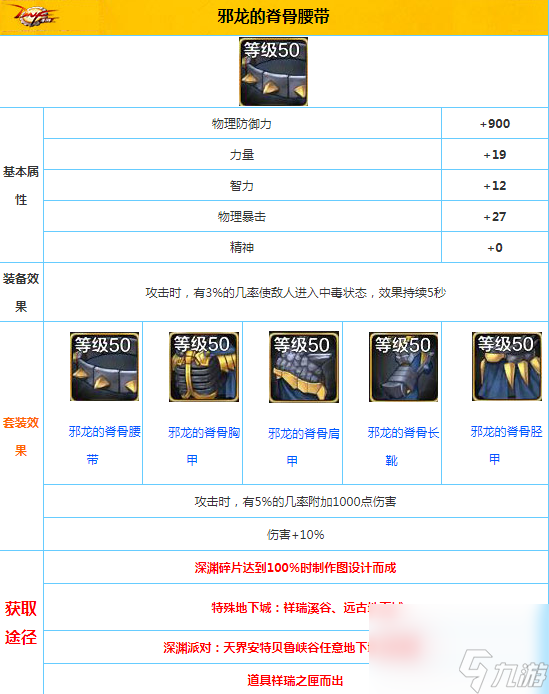 《DNF手游》邪龙的脊骨腰带怎么样?游戏中,每个难关都有其解决之道,关于《DNF手游》邪龙的脊骨腰带的疑惑,下面我将为你拨开迷雾,全面剖析,给大家带来详细的介绍。地下城与勇士M邪龙的脊骨腰带属性介绍一、基本属性物理防御力 900力量 19智力 12物理暴击 27精神 0二、装备效果攻击时,有3%的几 阅读全文...