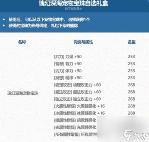 dnf2024夏日套宠物宝珠属性是什么?最近dnf是马上要推出2024年的夏日套了,在这次夏日礼包中,我们是可以获取到属性很好的夏日套宠物宝珠的,那么下面就让小编来给大家介绍一下这次的宠物宝珠的属性吧,希望大家喜欢。 1、瑰幻深海宠物宝珠的加成如下: 253名望 [武力]力量 +50;[智慧]智力 阅读全文...