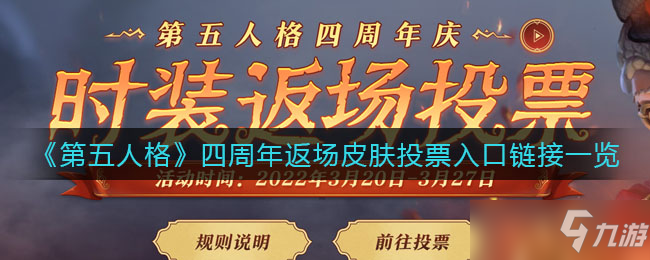 第五人格游戏中四周年活动即将开启,同时会有返场皮肤投票活动,那么今天小编就给大家介绍一下第五人格四周年返场皮肤投票入口链接一览,有需要的小伙伴不要错过了。 地址一览" 第五人格四周年返场皮肤投票入口链接一览 一、活动时间 投票时间:2022年3月20日14时40分-2022年3月27日23时59分 阅读全文...